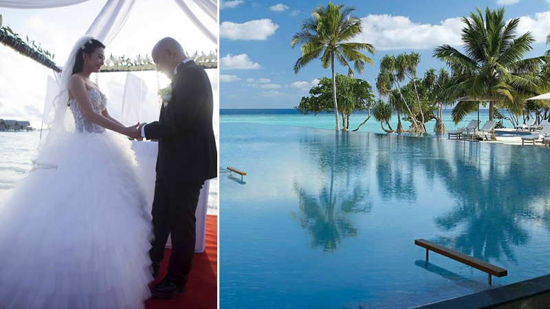 O diretor chinês Wang Quan’an se casa com a atriz Zhang Yuqi nas Maldivas, em abril de 2013.
