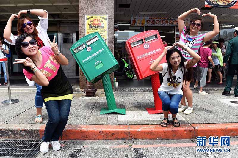 Duas caixas de correio de ferro em Taipei foram dobradas na mesma dire??o pelo tuf?o que atingiu a ilha, tornando-se agora um ponto turístico popular que está a atrair centenas de turistas perfilados para tirar suas fotos junto delas.