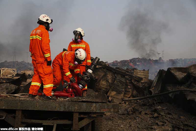 Bombeiros continuam opera??es de resgate no local da explos?o em Tianjin (6)
