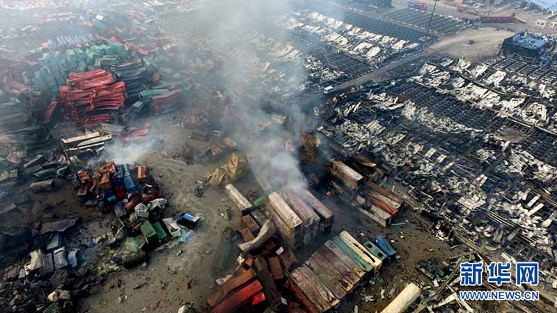 Até às 9h20 de hoje (17), ainda há fogo por volta do ponto central das explos?es do porto de Tianjin, que ocorreram no dia 12 deste mês. Agora, ocorreram novas explos?es no local.