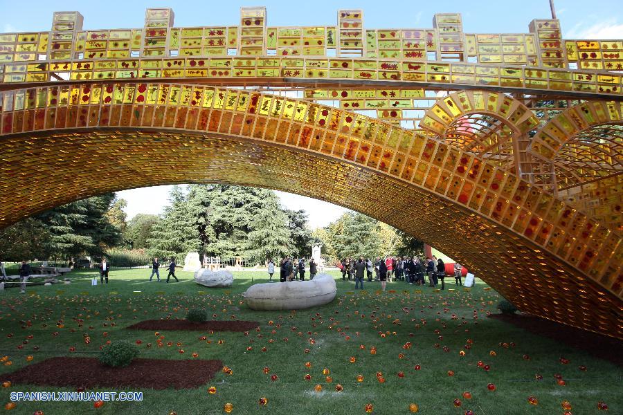 MIL?O, 29 de setembro (Diário do Povo Online) – Uma estrutura gigante em forma de ponte dourada, criada por um artista chinês moderno, foi apresentada na última segunda-feira (28) na Expo de Mil?o.