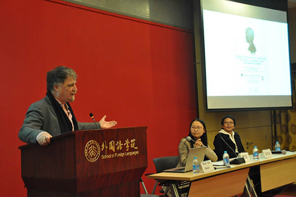 Thomas Patrick Dwyer, líder da delega??o da UNICAMP, durante seminário na Universidade de Pequim. Foto: Diário do Povo Online