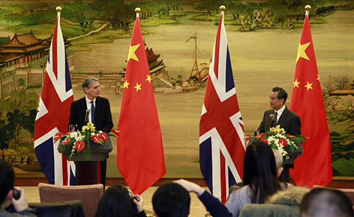 Beijing, 6 jan (Xinhua) -- O ministro das Rela??es Exteriores da China, Wang Yi, e seu colega britanico, Philip Hammond, reuniram-se na ter?a-feira em Beijing e prometeram uma maior coopera??o entre os dois países em indústria, finan?as e cultura.
