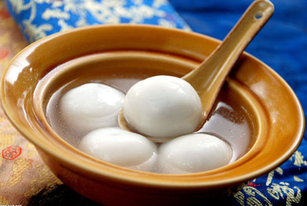 Os chineses gostam de comer comidas redondas porque a palavra chinesa para “redondo” também significa reuni?o. Dois tipos de comida redondas s?o típicas no jantar na véspera do ano novo: alm?ndegas e Tangyuan (bolinhas de farinha de arroz glutinoso servido com sopa).