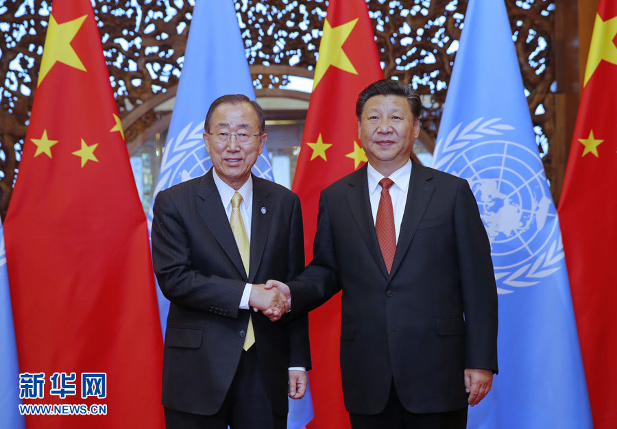O presidente chinês, Xi Jinping, recebeu ontem (7) em Beijing o secretário-geral da ONU, Ban Ki-moon, que está em sua 10a visita na China.