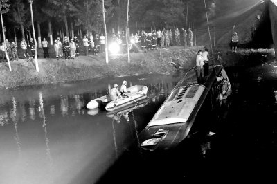 O acidente ocorreu na noite do dia 1o de julho, quando um ?nibus que transportava 30 passageiros bateu no parapeito na se??o de Baodi da rodovia Tianjin-Jixian e caiu em um canal. Vinte e seis pessoas a bordo morreram.