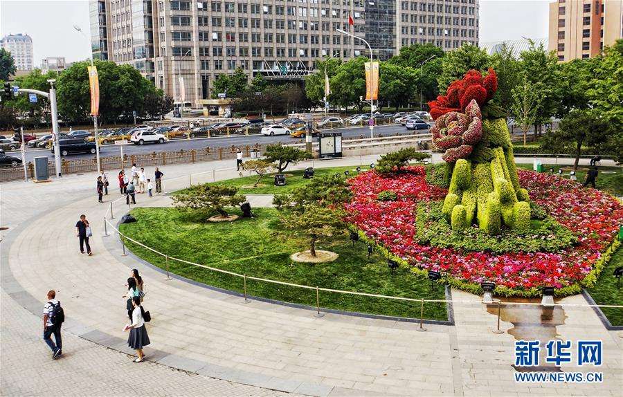 A prefeitura de Beijing instalou um grande canteiro de flores no centro da cidade para comemorar a realiza??o do fórum.