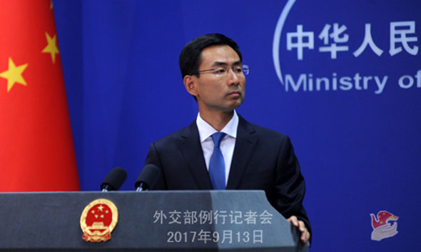 O porta-voz do Ministério das Rela??es Exteriores, Geng Shuang, fez tal afirma??o sobre a recente ado??o de uma resolu??o pela 71a sess?o da Assembleia Geral da Organiza??o das Na??es Unidas (ONU) que incorpora o princípio da "consulta ampla, contribui??o conjunta, e benefícios compartilhados", apresentado pela China em uma coletiva de imprensa regular realizada no mesmo dia em Beijing.