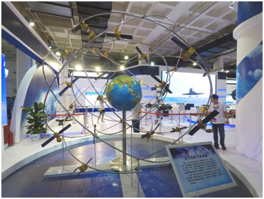 Foto de 8 de junho de 2017 apresenta o modelo dos satélites do sistema de navega??o "BeiDou" no Centro Internacional de Exposi??o da China, localizado em Beijing.(CFP)