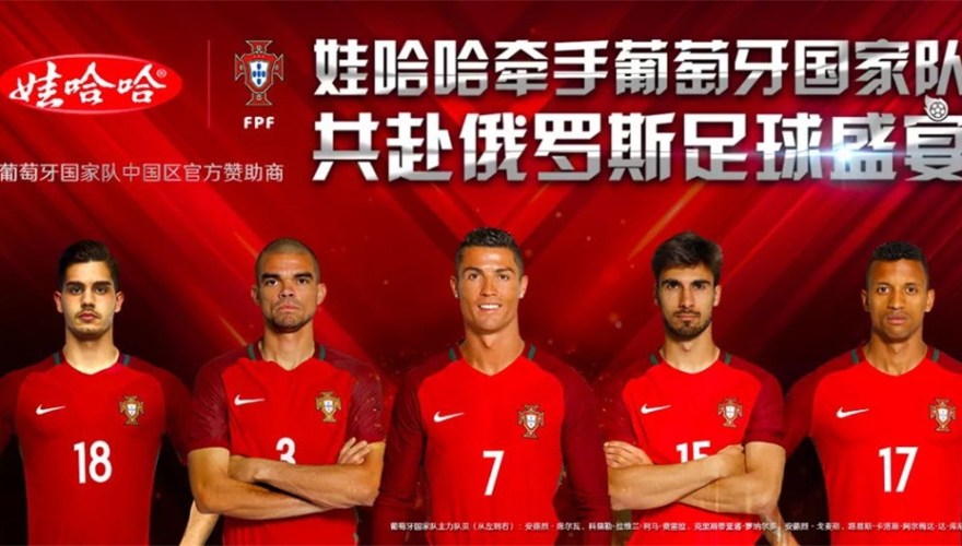 O grupo chinês Hangzhou Wahaha, um dos maiores produtores de água, lacticínios e refrigerantes da China, vai patrocinar a selec??o portuguesa de futebol no decorrer do Mundial de 2018, que terá lugar na Rússia.
