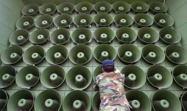Foi noticiado que a RPDC operava cerca de 40 alto-falantes fixos ao longo da fronteira inter-coreana, estabelecendo uma guerra psicológica contra a Coreia do Sul.