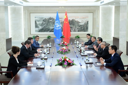 "A China está disposta a fortalecer a coopera??o com as Na??es Unidas para promover a resolu??o dos assuntos regionais de preocupa??o comum por meio de diálogo e negocia??es, e para lidar com todos os tipos de amea?as e desafios globais", disse Wang.