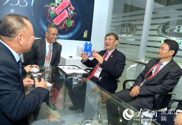 Heilongjiang é famosa pela sua agricultura. Durante a exposi??o, Wang conversou com Kuok Khoon Hong, presidente e chefe executivo do Grupo Wilmar e, simultaneamente, com o chefe executivo do subgrupo Yihai Kerry. Os dois abordaram o programa da cria??o de um grande parque agrícola moderno e a reestrutura??o da planta??o de produtos agrícolas.