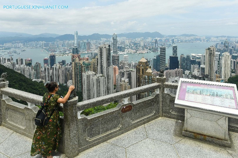 Uma turista visita Peak Hong Kong, ponto cênico na cidade no sul da China, em 20 de agosto de 2019.
