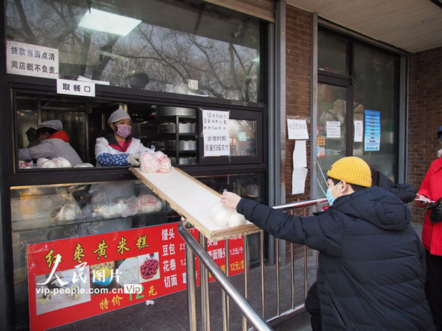Em 19 de fevereiro de 2020, uma padaria localizada na rua Andingmen em Beijing, usou uma placa de madeira para entregar p?ezinhos recheados aos seus clientes, a fim de manter uma distancia segura entre as pessoas. O estabelecimento recomendou o pagamento via código QR. Para lidar com os idosos que pagavam em dinheiro, os funcionários da padaria passaram a colocar o dinheiro numa espécie de colher com cabo longo, para evitar a aproxima??o ao cliente.