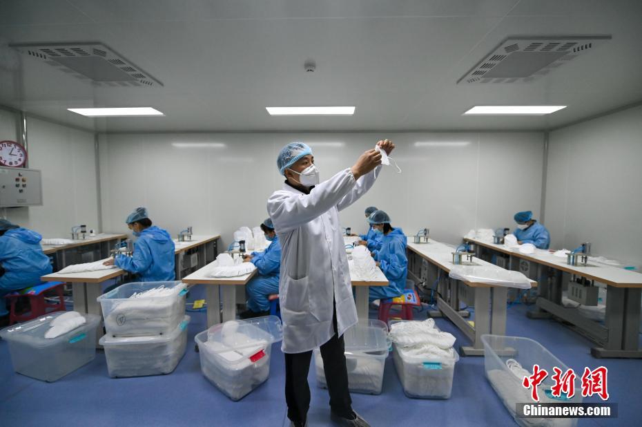 Em 24 de fevereiro, Guan Xunze examina as máscaras produzidas.