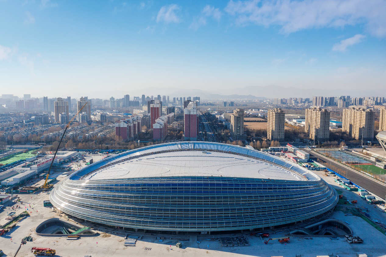 Na tarde de 31 de dezembro de 2019, a estrutura do centro de patinagem dos Jogos Olímpicos de Inverno de 2022 em Beijing, em forma de fita, foi concluída.