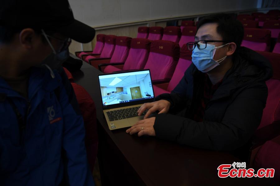 Ala de isolamento vista em um computador com um trabalhador demonstrando como a tecnologia 5G de realidade virtual pode desempenhar a sua fun??o nos tratamentos médicos, 24 de fevereiro de 2020.