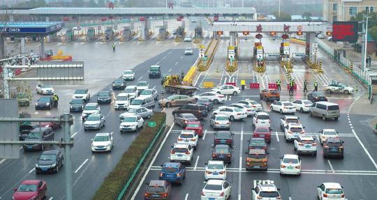 Esta??o de pedágio Fuhe na via expressa Daihuang ao norte de Wuhan, província de Hubei, está fechada, já que a cidade foi colocada em confinamento por causa do surto de pneumonia em curso. (Foto: Yuan Zheng/Para China Daily)