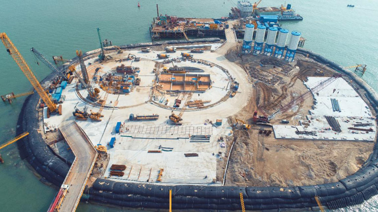 Operários trabalham na obra da ponte Shenzhen-Zhongshan, na província de Guangdong, 24 de fevereiro. (He Linping/Diário do Povo Online)