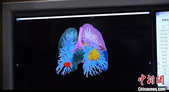 Esta foto mostra uma reconstru??o pulmonar em 3D de um paciente recentemente diagnosticado com pneumonia causada pelo novo coronavírus. (Foto: China News Service/Du Xiaoxiao)