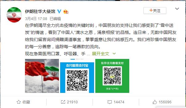 Internautas chineses est?o entrando em contato com a embaixada iraniana e perguntando sobre como doar dinheiro, o que emocionou a embaixada.