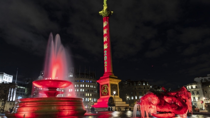 Na Inglaterra, a cidade de Londres n?o p?de comemorar t?o entusiasticamente como nos anos anteriores devido às medidas para controlar a epidemia, mas o vermelho, cor simbólica do Ano Novo Chinês, trouxe o ritmo festivo para a cidade. A celebra??o do Ano Novo Chinês em Londres é a maior celebra??o deste festival fora da ásia. Ela ocorre na Trafalgar Square há 19 anos consecutivos. O evento deste ano n?o foi cancelado, mas ocorreu online. O povo britanico teve uma retrospectiva das celebra??es anteriores e também aproveitou shows de artistas chineses. Em Edimburgo, um artista até fez cart?es de Ano Novo para o Ano do Boi com nós tradicionais chineses no Boi das Terras Altas.