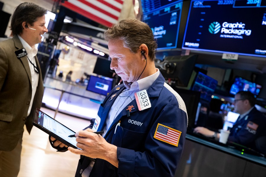 Trader trabalha na Bolsa de Valores de Nova York em Nova York, Estados Unidos, no dia 22 de fevereiro de 2022. (Allie Joseph/NYSE/Divulga??o via Xinhua)