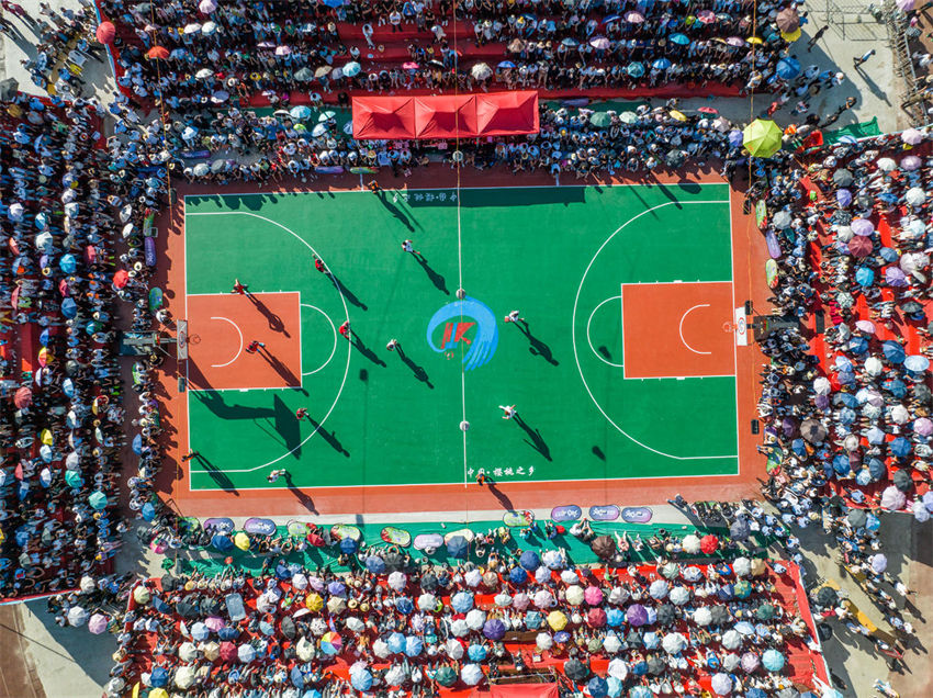 Um torneio de basquete entrou na fase final no condado de Hezhang, província de Guizhou, no sudoeste da China, na quarta-feira (3). O estádio, sob o sol escaldante, estava lotado de torcedores quando os jogadores competiram ferozmente, torcendo e gritando um após o outro.
