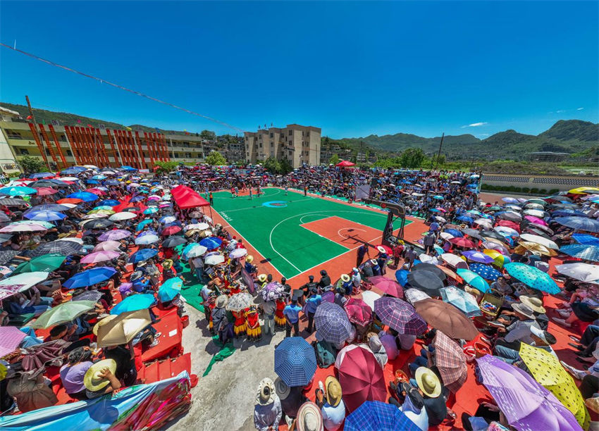 Um torneio de basquete entrou na fase final no condado de Hezhang, província de Guizhou, no sudoeste da China, na quarta-feira (3). O estádio, sob o sol escaldante, estava lotado de torcedores quando os jogadores competiram ferozmente, torcendo e gritando um após o outro.