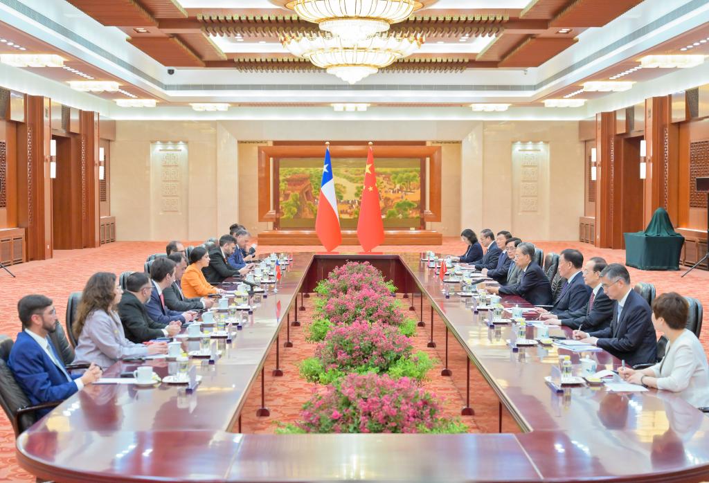 O chefe do Legislativo chinês, Zhao Leji, realizou conversa??es com Karol Cariola Oliva, presidente da Camara dos Deputados do Chile, na sexta-feira em Beijing.