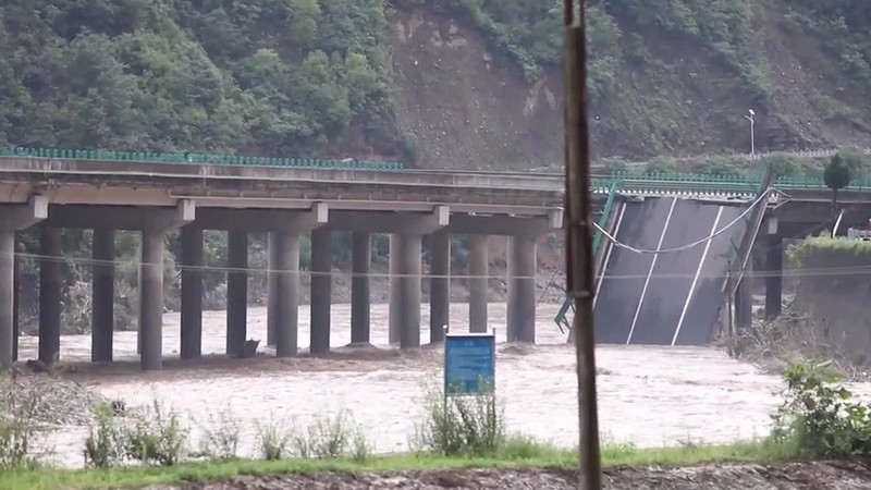 A ponte, localizada no distrito de Zhashui, na cidade de Shangluo, desabou parcialmente por volta das 20h40 de sexta-feira devido a uma chuva intensa e inunda??es repentinas, de acordo com o departamento distrital de comunica??o.
