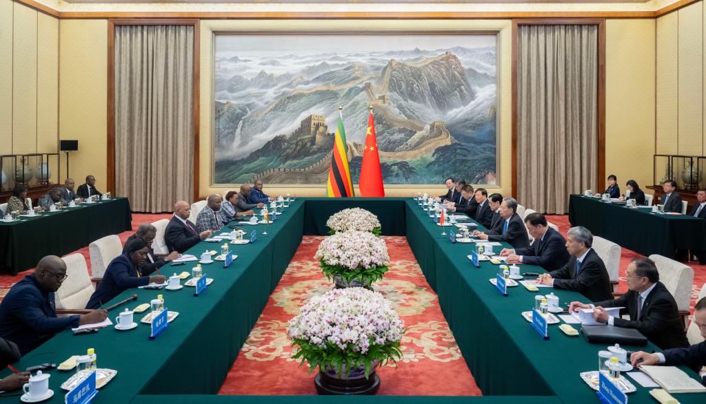 Zhao Leji, o principal legislador da China, conversou com o presidente do Parlamento do Zimbábue, Jacob Mudenda, em Beijing na ter?a-feira.