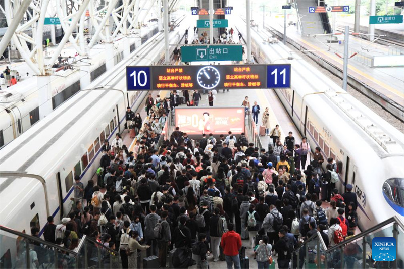 O Ministério dos Transportes da China apurou na quarta-feira (8) que, de 1o a 8 de outubro (feriados do Dia Nacional e do Festival do Meio Outono), o volume acumulado de viagens inter-regionais atingiu 2,432 bilh?es de viagens, uma média de 304 milh?es de viagens por dia, um aumento anual de 6,2%, estabelecendo um novo recorde.
