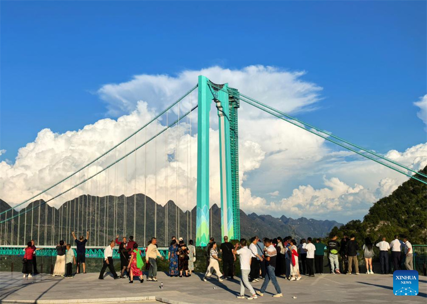 Durante o feriado de oito dias do Dia Nacional da China e do Festival do Meio do Outono, que terminou na quarta-feira (8), a recém-inaugurada Ponte do Grande Canion de Huajiang, com 625 metros de altura sobre o Rio Beipan, tornou-se uma grande atra??o.