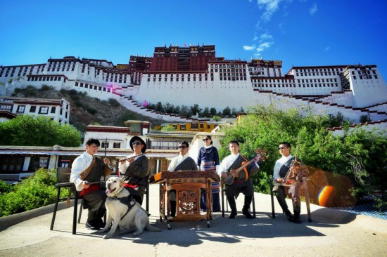 Os membros da banda "Kardag Garbo" posam para uma foto em grupo em frente ao Palácio Potala, em Lhasa, na Regi?o Aut?noma de Xizang, no sudoeste da China, em 17 de junho de 2025. (Xinhua)