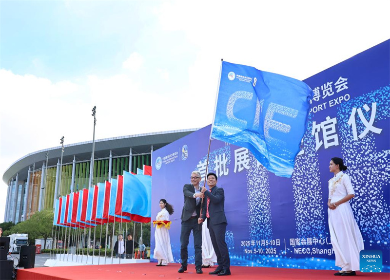 Uma cerim?nia que marca a chegada dos produtos da 8a Exposi??o Internacional de Importa??o da China (CIIE) é realizada na pra?a norte do Centro Nacional de Exposi??es e Conven??es (Shanghai), o principal local da CIIE, em Shanghai, no leste da China, em 23 de outubro de 2025. O primeiro lote de mercadorias s das áreas de Indústria Inteligente e Tecnologia da Informa??o, Alimentos e Produtos Agrícolas e Equipamentos Médicos e Produtos para a Saúde da 8a CIIE chegou ao Centro Nacional de Exposi??es e Conven??es (Shanghai) na quinta-feira. (Foto: Fang Zhe/Xinhua)