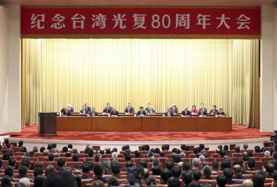 Wang Huning, membro do Comitê Permanente do Bir? Político do Comitê Central do Partido Comunista da China e presidente do Comitê Nacional da Conferência Consultiva Política do Povo Chinês, faz um discurso em uma reuni?o em comemora??o ao 80o aniversário da restaura??o de Taiwan à China, em Beijing, capital da China, em 25 de outubro de 2025. (Xinhua/Liu Weibing)