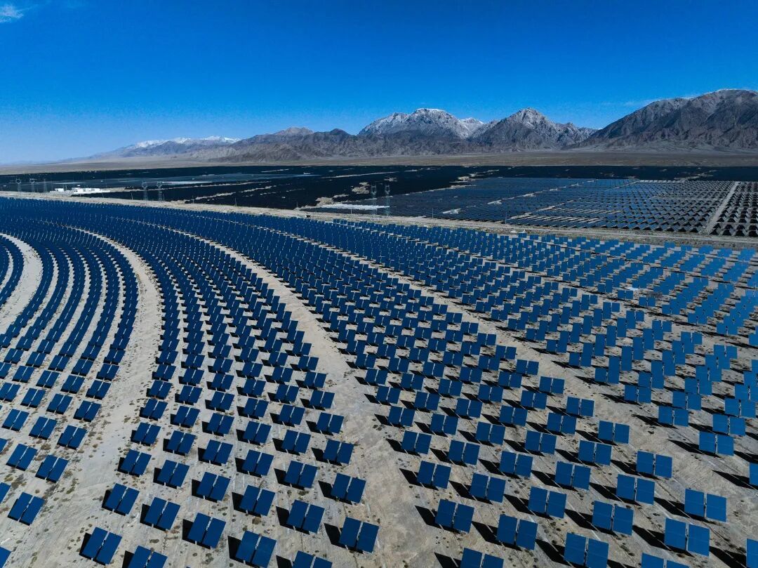 Usina de energia solar térmica no Parque Industrial Fotovoltaico e Solar-Térmico de Delingha, na Prefeitura Aut?noma Mongol-Tibetana de Haixi, província de Qinghai. (Zhang Long/Xinhua)