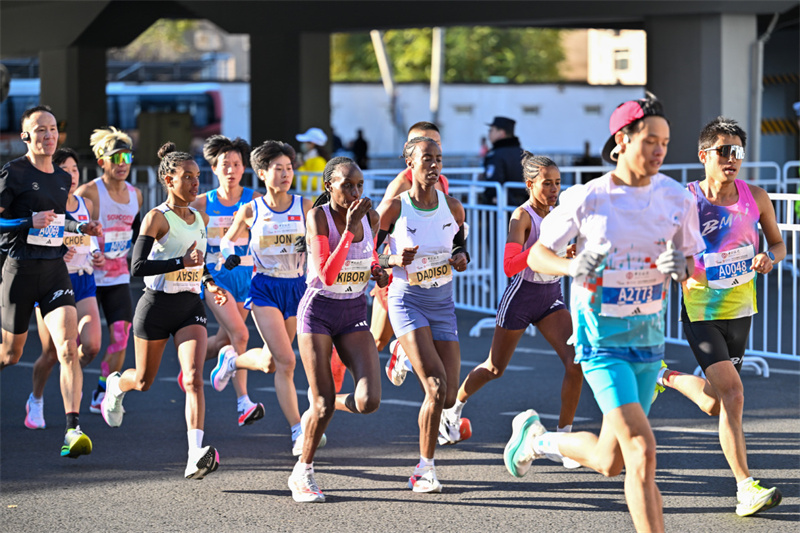 Participantes competem durante a Maratona de Beijing 2025, em Beijing, em 2 de novembro de 2025. [Foto/Xinhua]