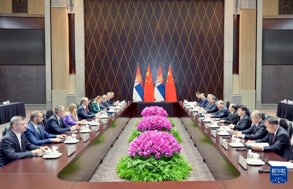 Ele expressou a disposi??o da China em refor?ar o seu alinhamento com o plano de desenvolvimento da Sérvia, utilizar plenamente o acordo bilateral de comércio livre com a Sérvia, promover projetos-chave no ambito da coopera??o de alta qualidade do Cintur?o e Rota e explorar o potencial de coopera??o profunda em áreas como inova??o científica e tecnológica, economia verde, biomedicina e inteligência artificial.