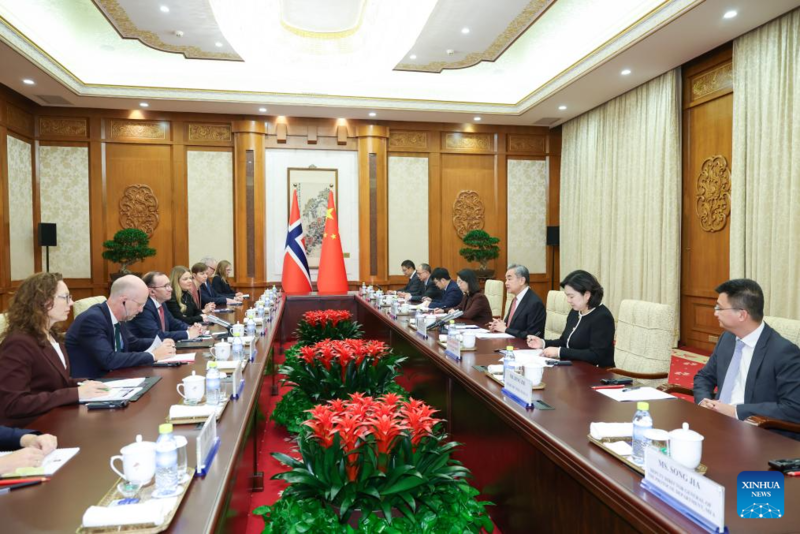 O ministro das Rela??es Exteriores da China, Wang Yi, manteve conversa??es com o ministro das Rela??es Exteriores da Noruega, Espen Barth Eide, em Beijing, na ter?a-feira.