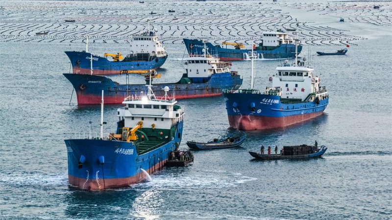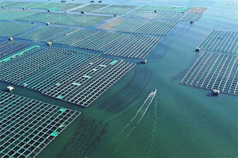 Vista aérea de uma área de cria??o numa fazenda marinha na cidade de Rongcheng, província de Shandong, leste da China, em 10 de novembro de 2025. (Foto: Wang Fudong/Xinhua)