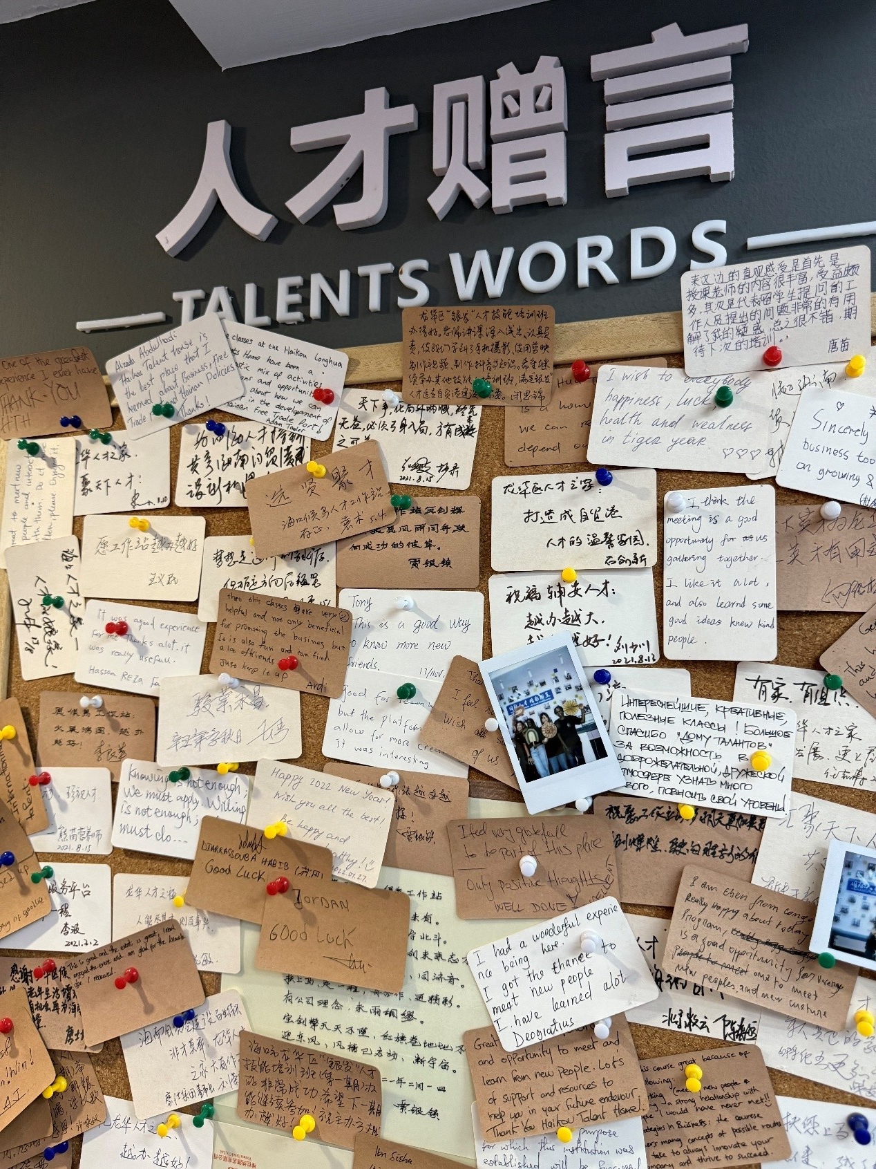 Uma parede de mensagens na Comunidade Internacional de Talentos da província de Hainan. (Foto: Song Ge/Diário do Povo Online)