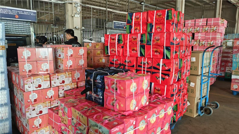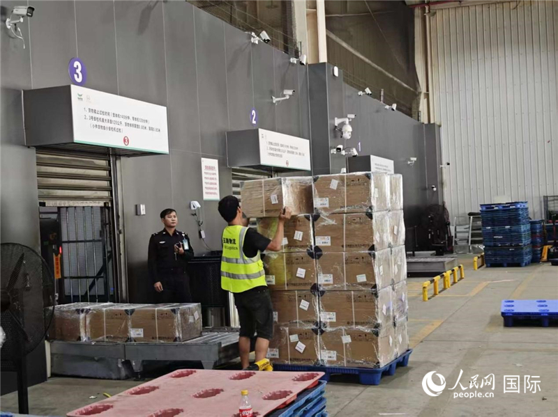 A mercadoria no Aeroporto Internacional de Meilan em Haikou (Foto: Cui Yige/Diário do Povo Online)