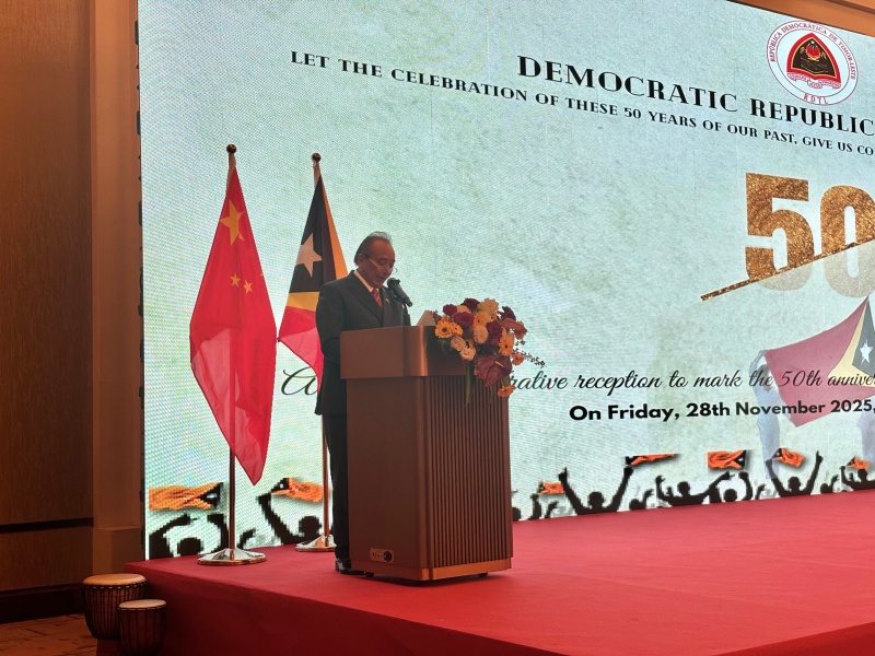 A Embaixada de Timor-Leste na China realizou, na última sexta-feira (28), uma cerimónia em Beijing, por ocasi?o dos 50 anos da declara??o de independência do país. O vice-presidente do Comitê Nacional da Conferência Consultiva Política do Povo Chinês (CCPPCh), Yang Zhen, e o vice-ministro das Rela??es Exteriores da China, Sun Weidong, estiveram presentes, a convite da embaixada. Representantes de diversas miss?es diplomáticas, organiza??es internacionais e convidados chineses e estrangeiros também participaram no evento.